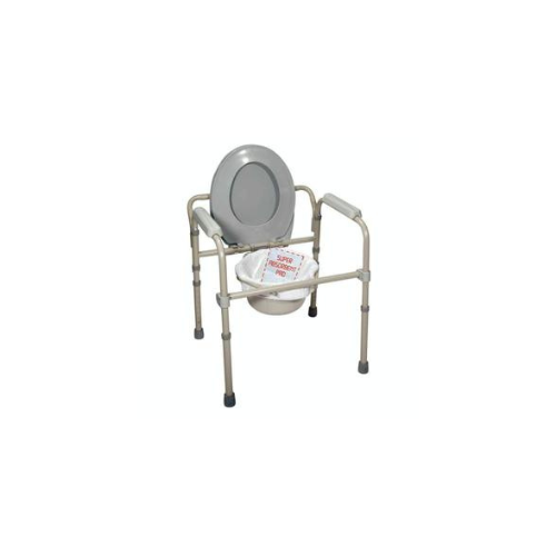 - Comes with a 7.5 qt. commode bucket, splash shield and cover. Splash shield acts as pail holder.
