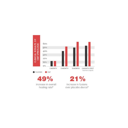 CMF SpinaLogic is a portable, battery-powered, micro-controlled, noninvasive bone growth stimulator indicated as an adjunct electromagnetic treatment to primary lumbar spinal fusion surgery for one or two levels.