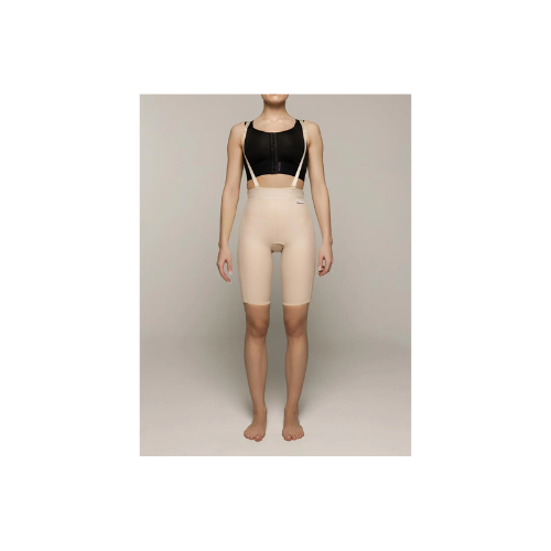 These body hugging pants are designed to be worn under clothing and feature a double tummy panel, 3″ wide waistband, reinforced open crotch, side separating cotton lined zippers with a 1/8″ thick, full length foam guard pad and full length contact closures for optimum compression and a comfortable, customizable fit. A strip of lace trim along the bottom of each pant leg helps prevent rollup. Latex free. Provides excellent post-surgical support and compression for surgeries around the abdomen, buttocks, flank area, hips, thighs and knees.
