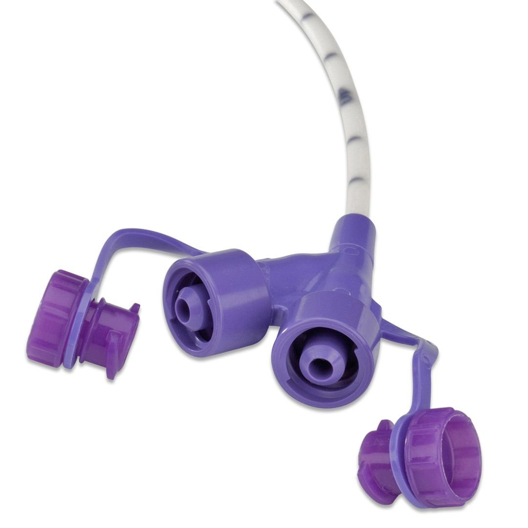 - Has a female connector end for any administration sets and syringes that fit into a male patient-access feeding tube port