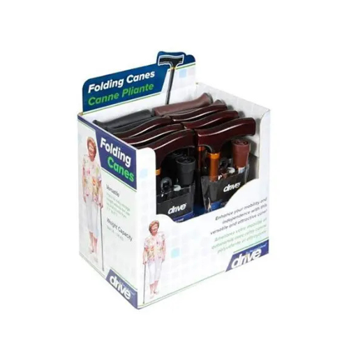 - Compactly and conveniently displays folding canes in an attractive counter top display.