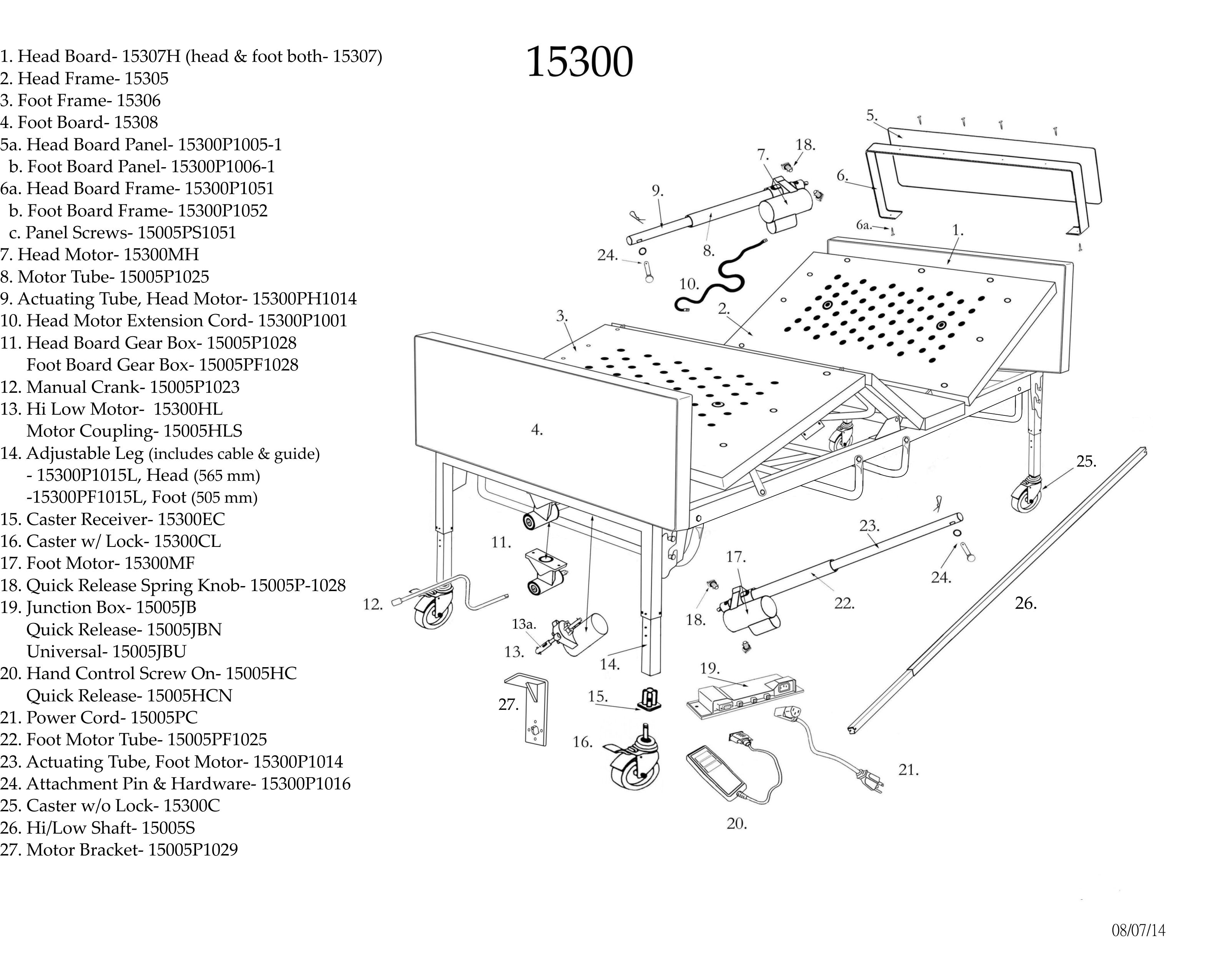 | 14 | Select | Adj Leg Foot ( 505mm) (includes cable & plastic glide) (does not include part 15) | 15300PF1015L |