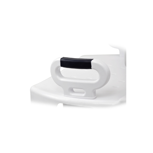 - Combines transfer bench and commode into one.