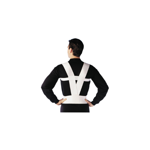 - Criss-crossed suspender like straps gently pull the shoulders back into the neutral position to decrease back and shoulder pain