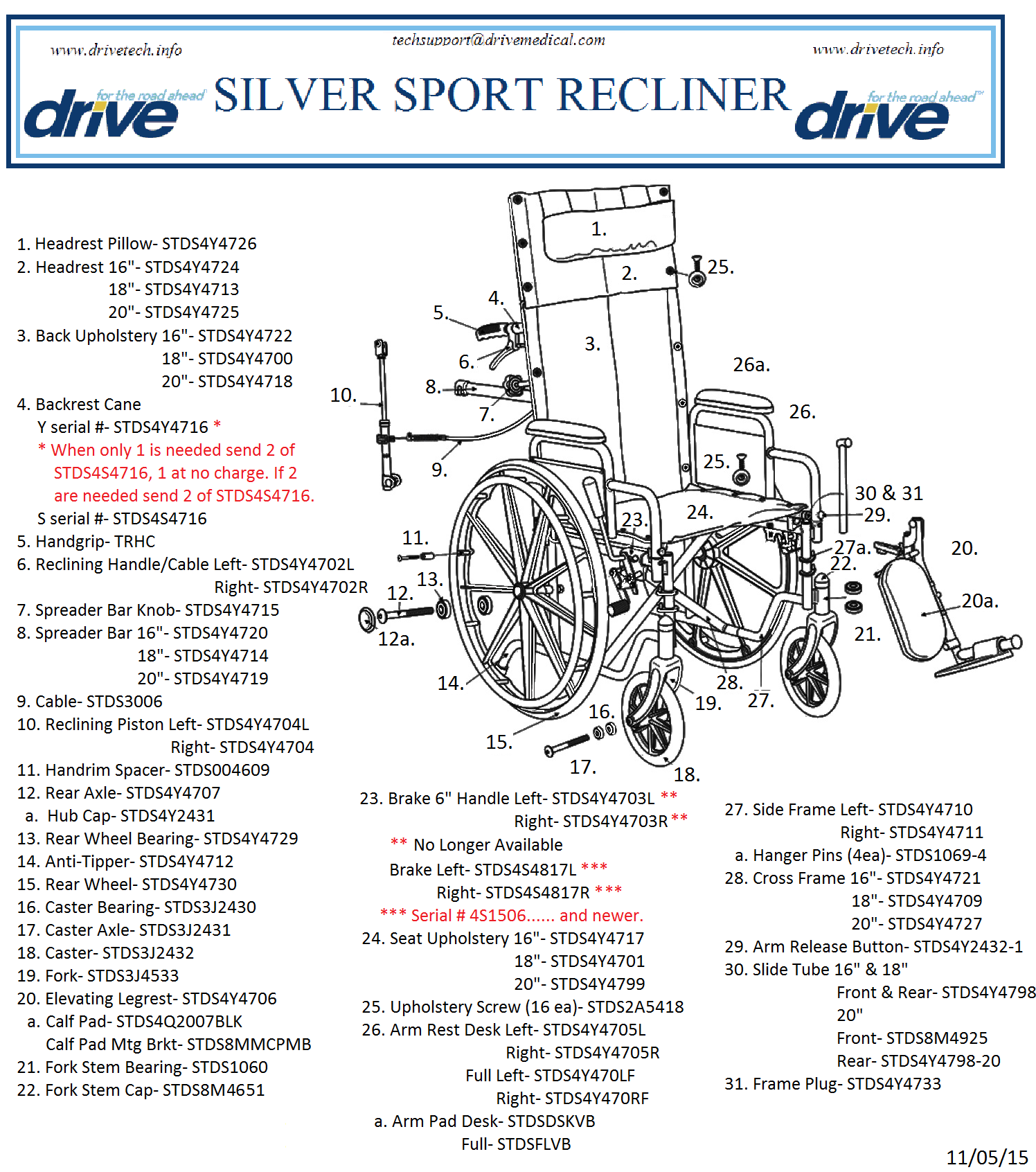 | SSP16RBDDA | Select | 16″ | Detachable Desk Arm | Swing-away, Elevating Leg rests | Silver Vein | K0001+E1226 | 1/cs |