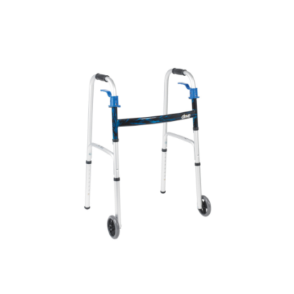 Deluxe Folding Walker, One Button with 5” Wheels