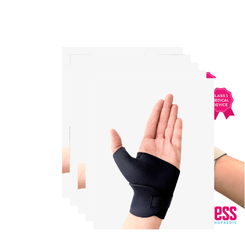 Neoprene construction provides compressive wrist support with thumb abduction. One size fits most patients. Right or left. Ideal for soft tissue injuries to the thumb and wrist.